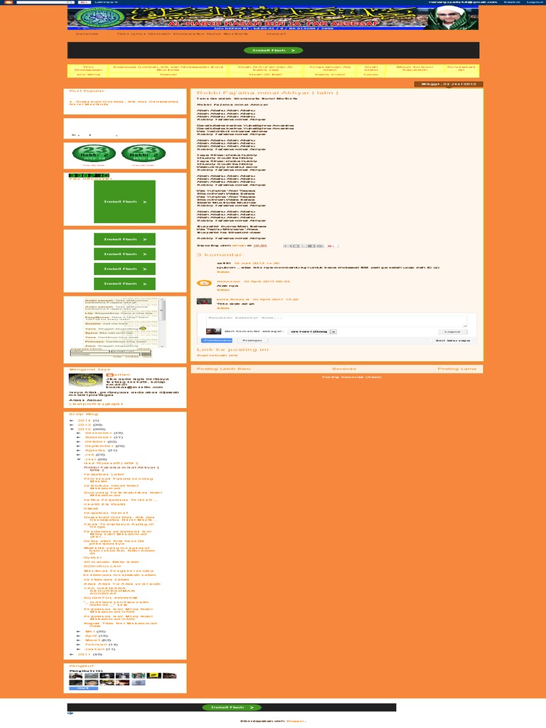 Allah Allahu Allah Allahu Robbi Faj'alna Minal Akhyar Lirik Arab - Doc Kumpulan Lirik Lagu Marawis Terbaru Dan Terlengkap Abdul Rahman Academia Edu - Robbi faj'alna minal akhyar 76.. Temukan lagu terbaru favoritmu hanya di lagu 123 stafaband planetlagu. Diposting oleh unknown di 21.00 14 komentar: (*) niruho wong mulyo, habaib ulomo. Kategori ( majelis ta'lim wadda'wah malang ) (1) ahba'abul musthofa (4) ahba'abul musthofa purworejo (1) Ojo gawe angkuh, ojo ladak lan ojo jahil.